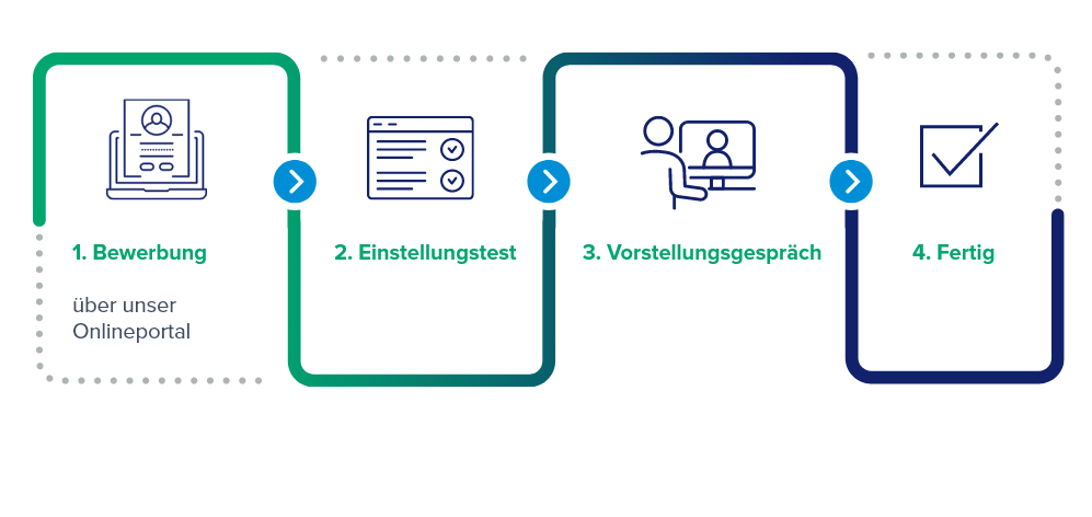 Das wollen wir im Rahmen des Bewerbungsverfahrens herausfinden – indem wir uns gegenseitig kennenlernen. Damit du vorab weißt, was dich erwartet, beschreiben wir dir gerne den Ablauf: