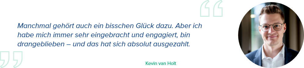 Dass Kevin van Holt mit Anfang 30 ein Team von gut drei Dutzend Mitarbeitenden führen würde, war bei seinem beruflichen Einstieg noch nicht unbedingt absehbar. Nach dem Realschulabschluss und einer Ausbildung zum Vermessungstechniker beim Kreis war Kevin erst einmal befristet angestellt. Auch aufgrund von Umstrukturierungen in seinem Arbeitsfeld musste er Flexibilität beweisen. So stieg er zunächst in der Kämmerei ein, kümmerte sich um Inventuren und unterstützte im Bereich der Anlagenbuchhaltung. Berufsbegleitend absolvierte er den Verwaltungslehrgang I – um sein Fachwissen zu vertiefen und zusätzliche Qualifikationen zu erwerben. Mit seiner Arbeit an Jahresabschlüssen und der zunehmenden Digitalisierung der internen Prozesse fand Kevin früh Themen, die ihn auch heute weiterhin begeistern. Um die Voraussetzungen für den gehobenen Dienst zu erfüllen, nahm er ein Fernstudium der Wirtschaftswissenschaften mit den Schwerpunkten Wirtschaftsprüfung und Rechnungslegung in Angriff und schloss es 2022 erfolgreich ab. Durch frühen Kontakt mit der Materie, die ihm übertragene Verantwortung, aber auch durch beständige Förderung durch seine Vorgesetzten, konnte sich Kevin so über Jahre in einen Arbeitsbereich hineinarbeiten, in dem er glücklich ist.Heute leitet Kevin die Kreiskasse und ist in dieser Funktion für den gesamten Geldfluss und die Einbringung noch offener Forderungen der Kreisverwaltung verantwortlich. Außerdem fallen Anlagenmanagement und Fördermittel-Controlling in seinen Fachdienst. Für ihn haben sich Eigeninitiative und Ausdauer beruflich ausgezahlt. Auch sein Ausblick fällt positiv aus: Durch stete Modernisierung – nicht zuletzt im Zuge der Kreishaus-Sanierung – sieht sich Kevin auch für die kommenden Jahre in einem dynamischen Arbeitsumfeld, in das er sich voll einbringen kann.