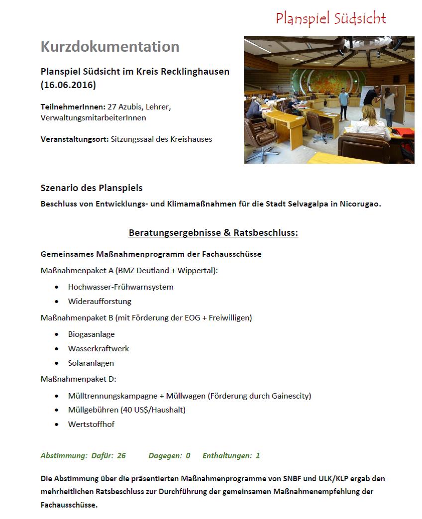 Um die Azubis in die Lage zu versetzen, über Umweltverhalten / Nachhaltigkeit zu diskutieren und die Verständigung untereinander zu fördern, wurde im Vorfeld der Klimawochen Ruhr 2016 mit Unterstützung der Natur- und Umweltschutz-Akademie NRW (NUA) eine sogenannte Inputseminarreihe mit 5-tägigen Workshops geschaltet.