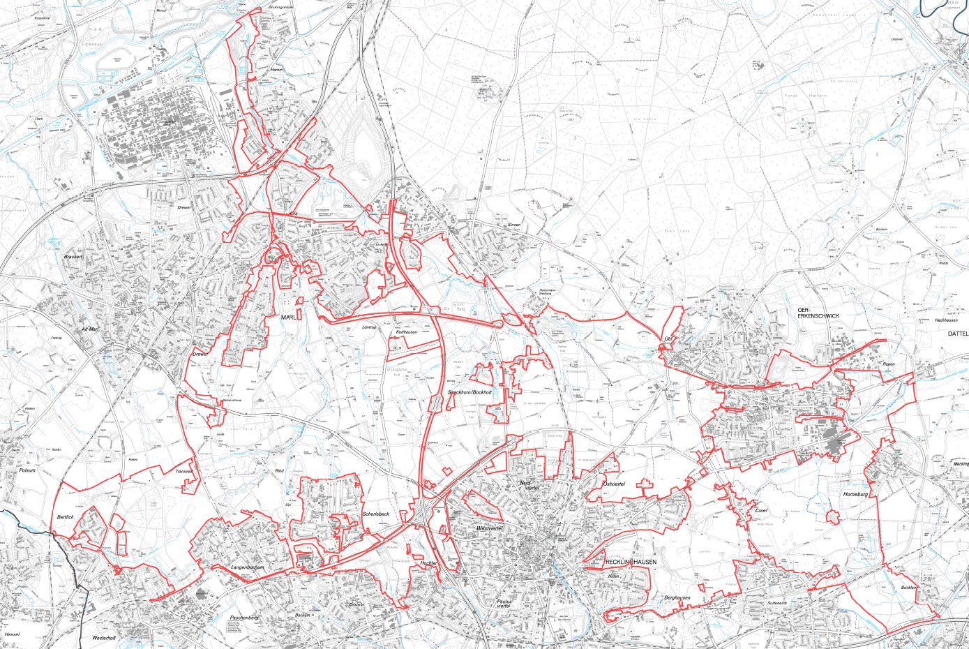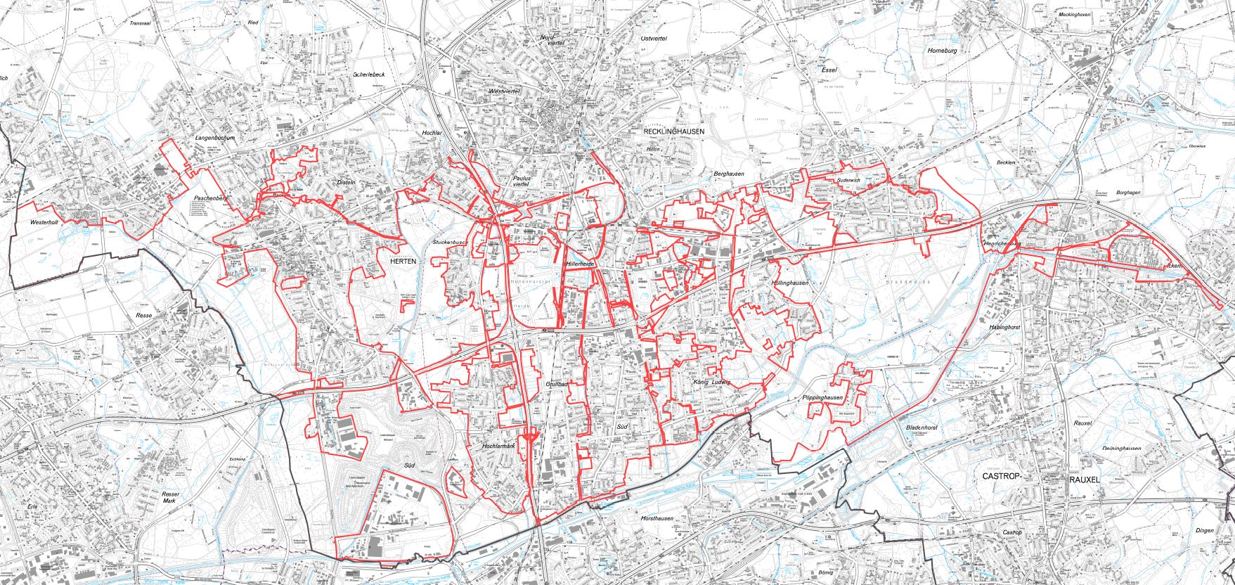 Mit etwa 6550 Hektar Fläche erfasst dieser Plan den gesamten baulichen Außenbereich zwischen Lippe und Horneburg sowie zwischen Haard und Emscher.